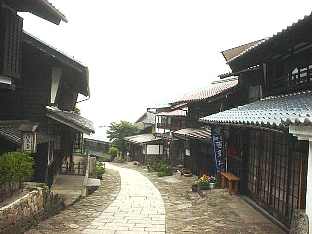 小説「夜明け前」の舞台としても有名。山間部のために水が不足しており、多くの火災に見舞われた。特に1895年と1915年の大火で江戸時代の古い町並みはすべて焼失しているが、再建された建物を守り続けてきた。美しい風景は日本全国に