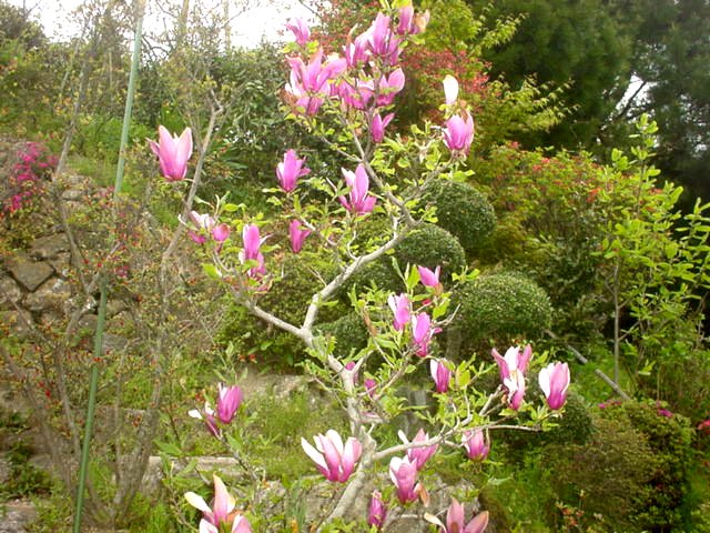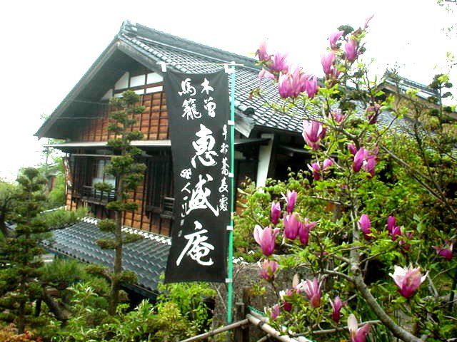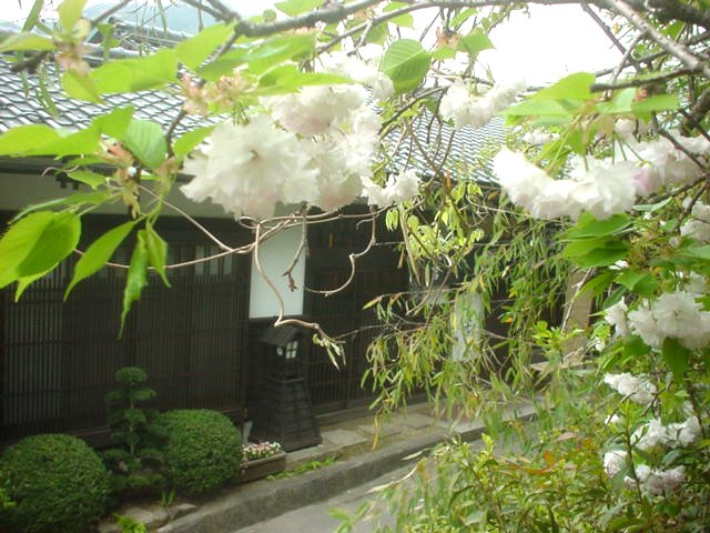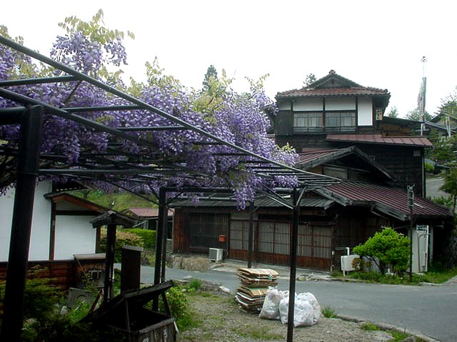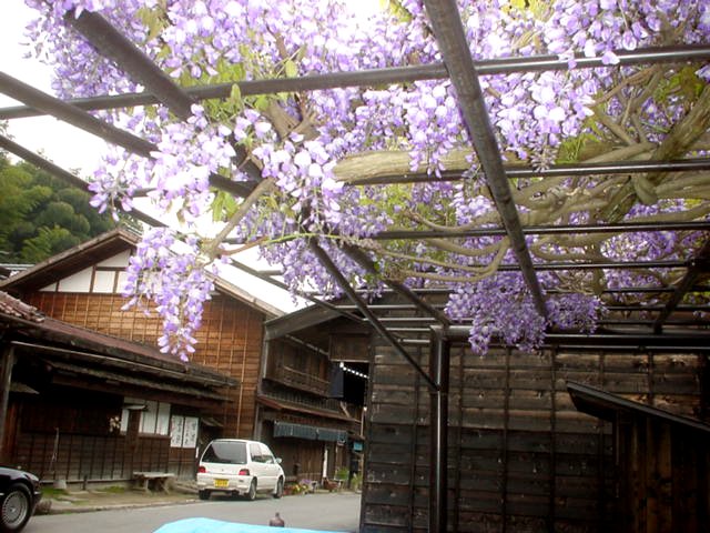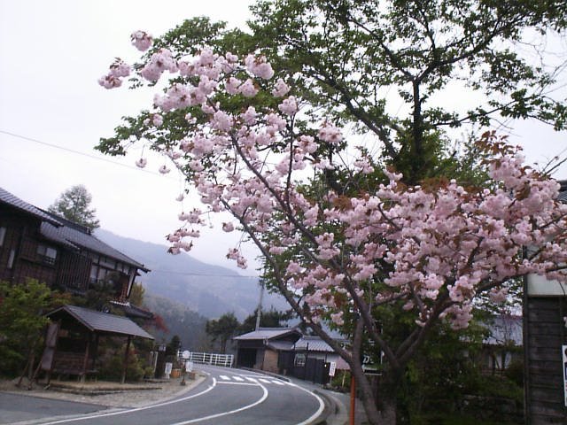 馬籠では八重桜が見頃で藤の花、紫のもくれん、ツツジなどが咲いていました。駐車場は8ヶ所無料Pあり。現在は旅館など宿7軒、お食事処等27軒、お土産等17軒。