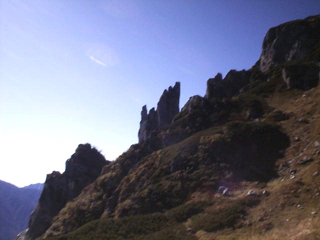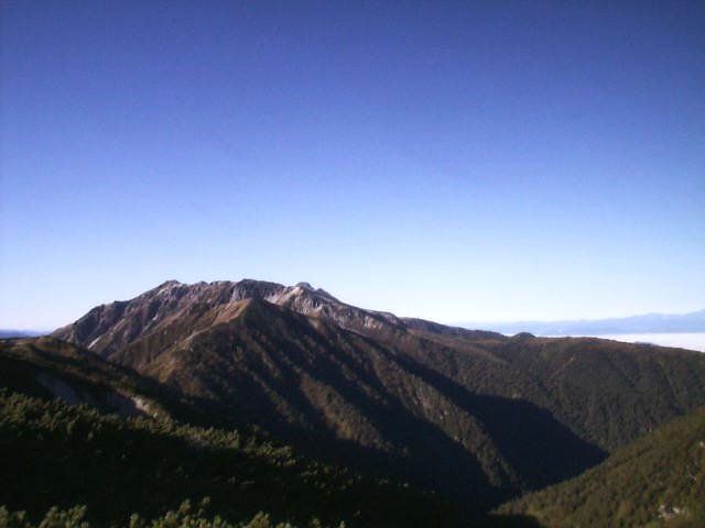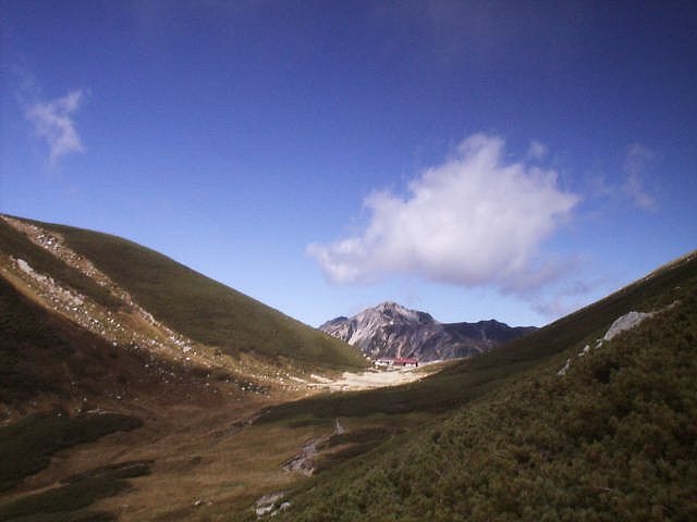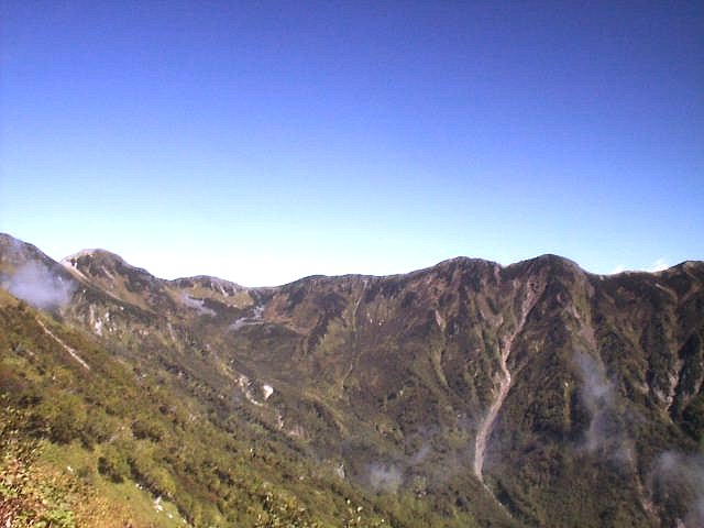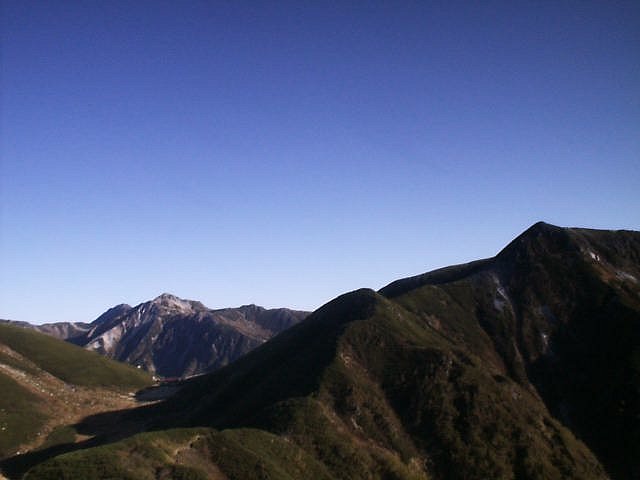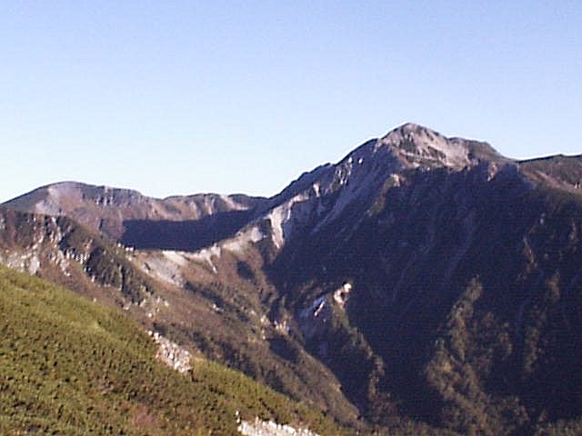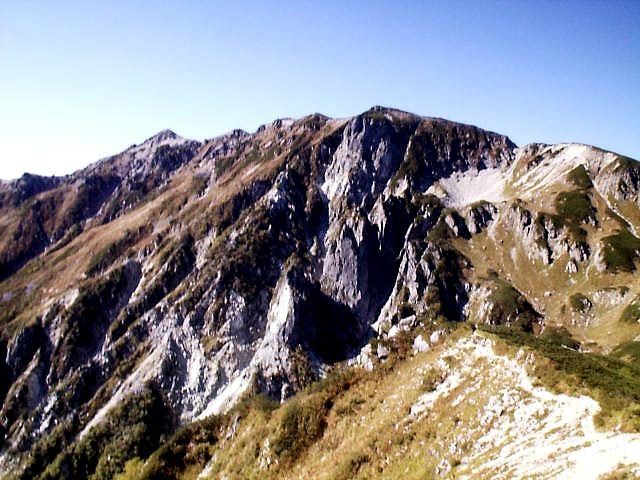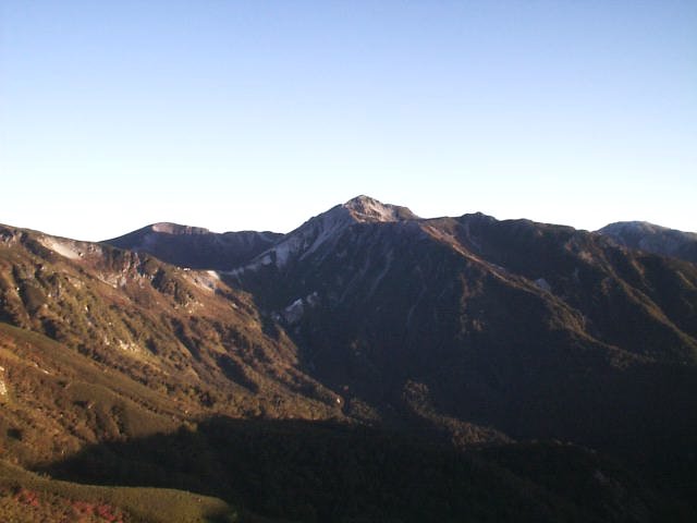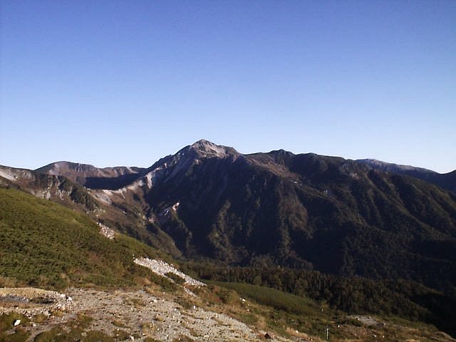 「日本三大急登」と呼ばれるキツイ笠新道だが下りもしんどかった。足はガクガクに。デジカメは電池切れで写真は取れず。(杓子平;7:00,天候;晴れ,気温;5℃,無風)