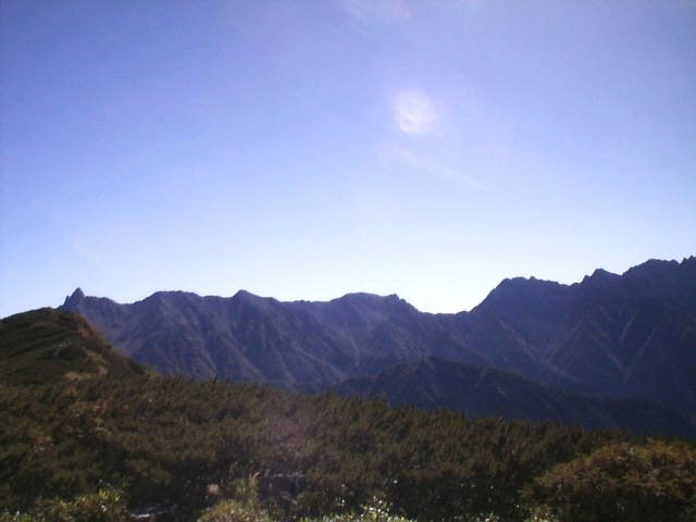 南には御岳・乗鞍岳、南東には富士山、甲斐駒ヶ岳、千丈ヶ岳、北岳の南ア、東は北鎌尾根から槍ヶ岳・大喰岳・中岳・南岳〜大キレット〜北穂・涸沢岳・奥穂・ジャンダルム・