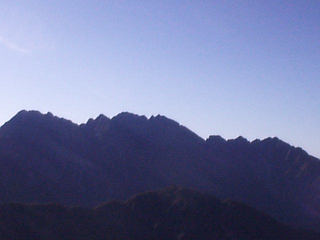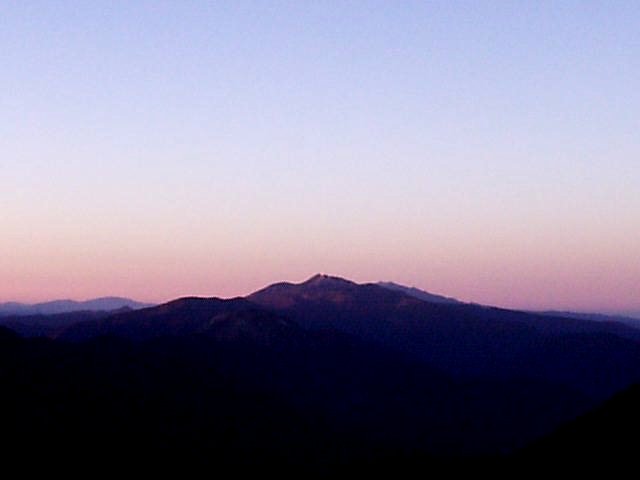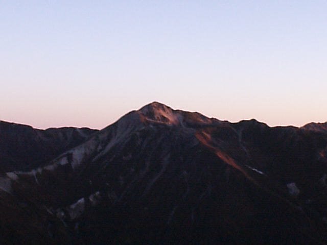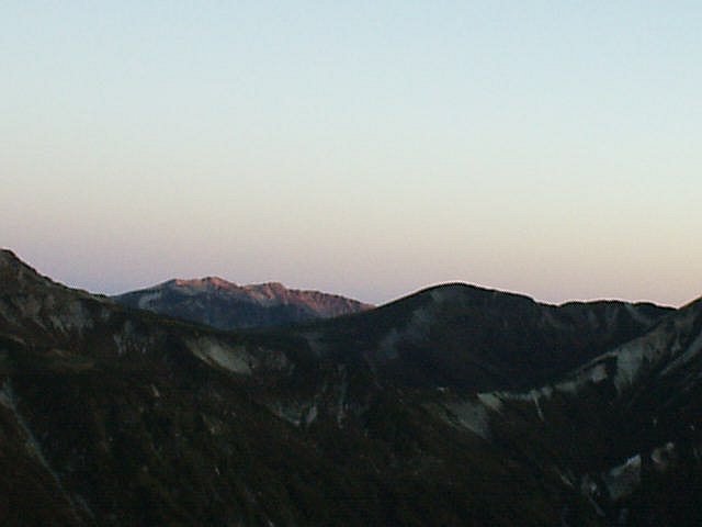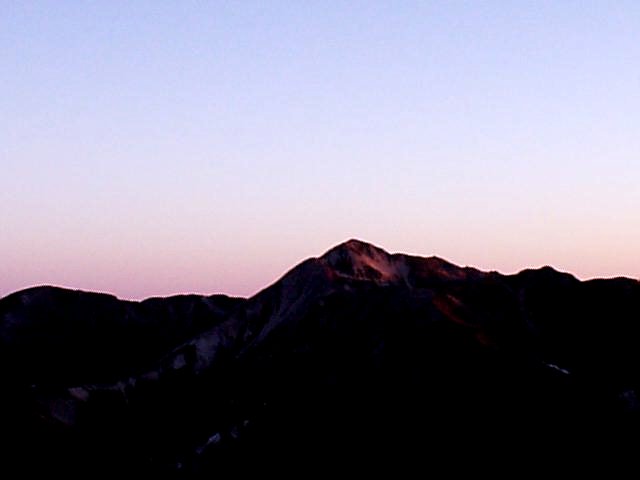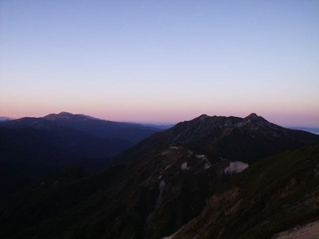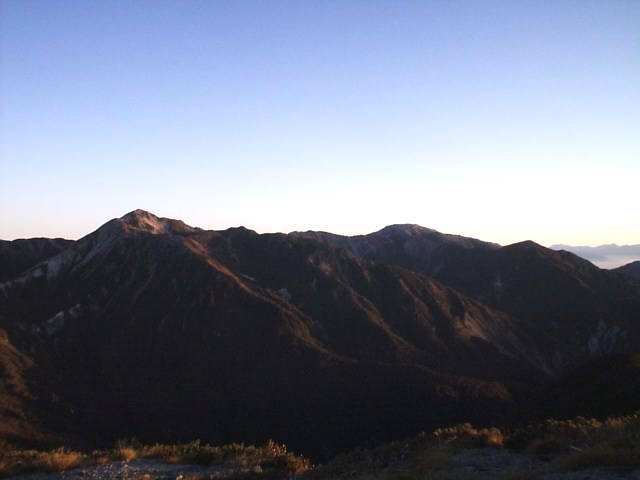 向こう側なので拝めませんでしたが、段々と明るくなるにつれて黒から青、青から黄色・オレンジ、白に変化する空と、槍・穂高の稜線はきれい。