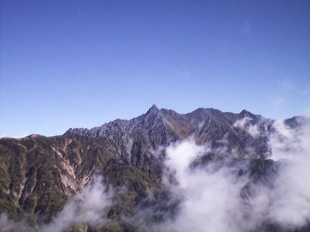 「双六岳」〜「笠ヶ岳」は3日間雲一つない快晴に恵まれ、飽きるくらい槍ヶ岳〜穂高連峰を3日間見て過ごした。山の上は朝0℃と低く初冬のような寒さだった。