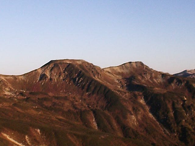 (7)双六岳から「笠ヶ岳」。「秩父平」;