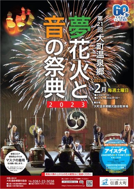 ■2023.2/4-2/25;「大町温泉郷」で「第21回夢花火と音の祭典2023」