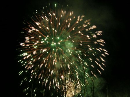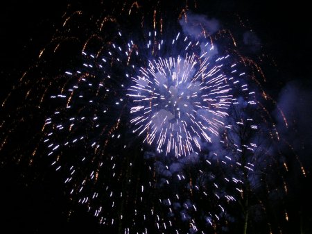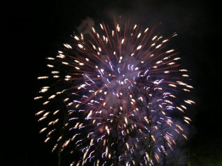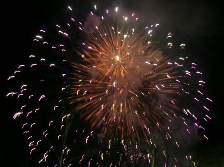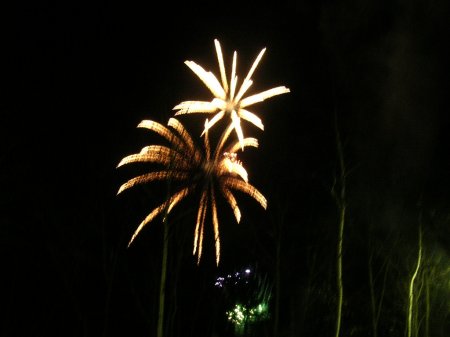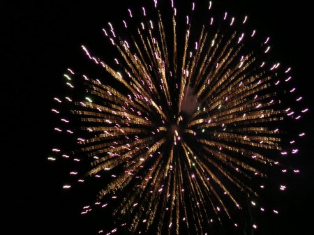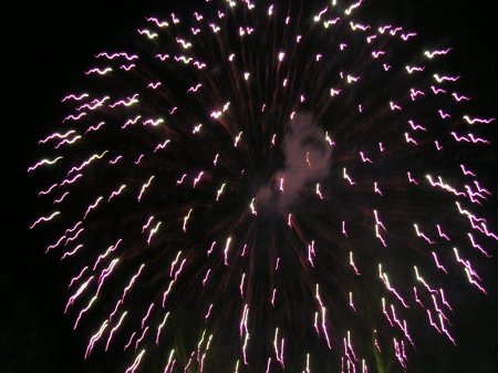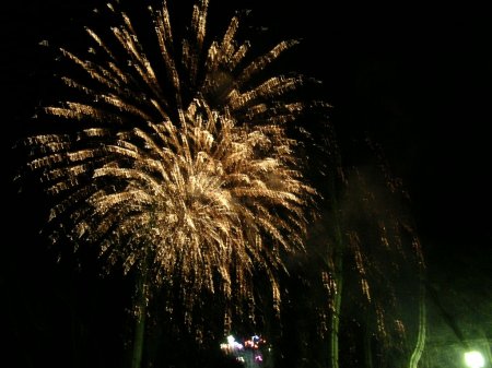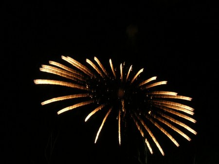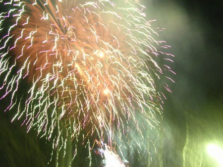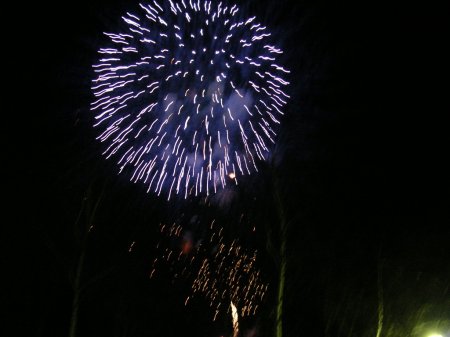 ■花火大会と太鼓の共演。太鼓の音色と共に、澄んだ冬の夜空に大輪の花が咲きました。