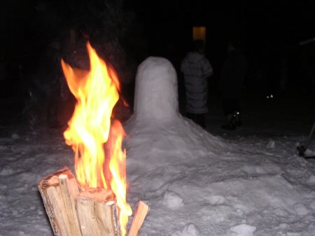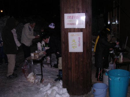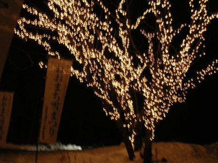 「雪まつり前夜祭」、大町商店街では「あめ市」・「荷ぐるま市」など。「大町温泉郷」ではかまくらのライトアップ、メッセージキャンドルライト、三九郎などが行われていました。大町温泉郷入口や温泉街のホテルや旅館前には