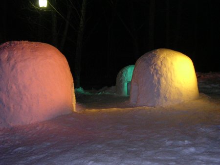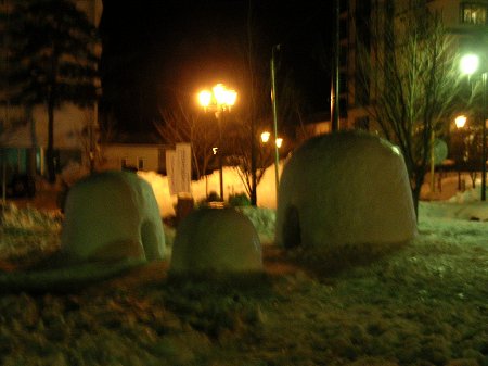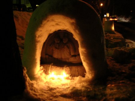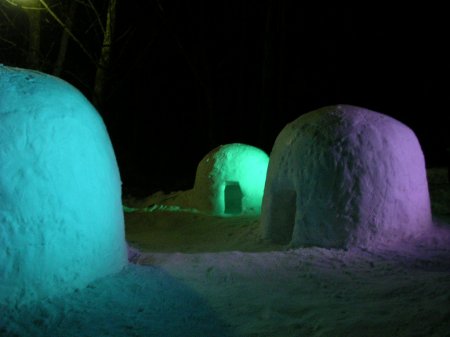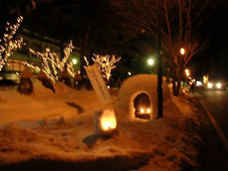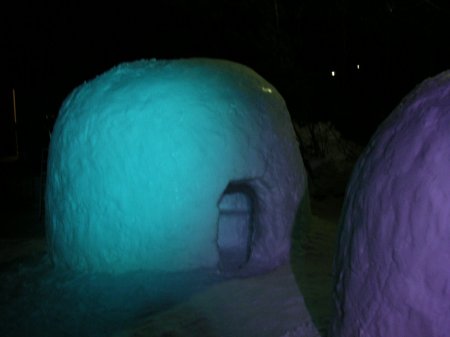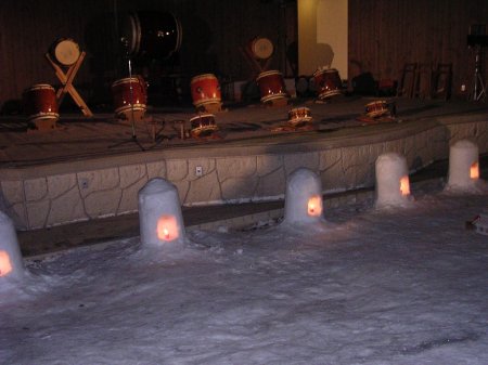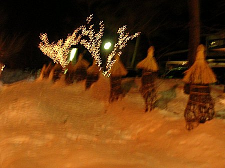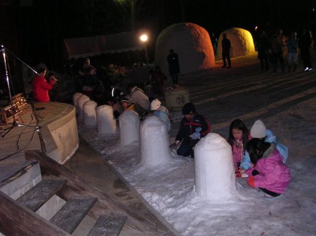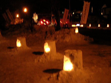 雪の灯籠が並び、各所に大小のかまくらや雪灯ろうが建ち、かまくらの中ではロウソクが灯りで暖かでした。かまくらの中には道祖神もありました。雪まつり期間中、多い年には来場者が8000人を超える年もあった。この2年はコロナ禍で