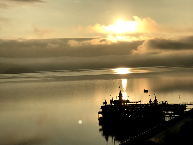 洞爺湖観光Hは洞爺湖が一望でき、部屋からは洞爺湖に浮かぶ中島や羊蹄山が望め、夜には部屋から花火が観覧できます。建物は古いホテルでノスタルジーな雰囲気があり、昔ながらの観光温泉H。ロビー・レストラン「湖畔」からは洞爺湖が一望。
