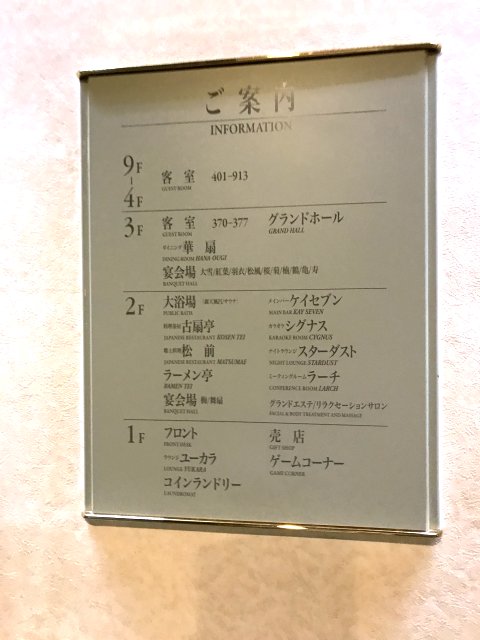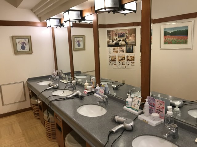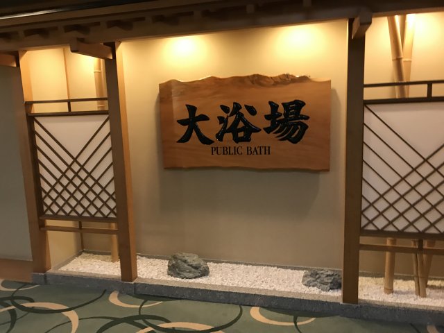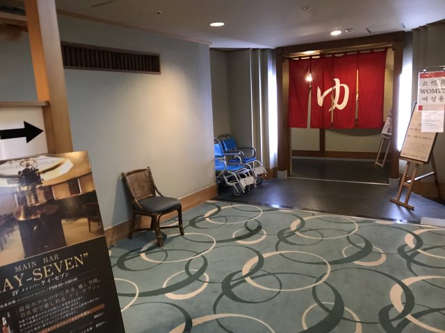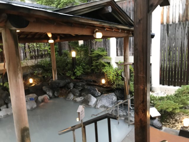 1)温泉はパノラマ浴場(内湯)と庭園の露天風呂と洞窟風呂、サウナ、露天付貸切風呂、ラジウム岩盤浴あり。