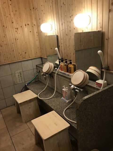 2つの貸切風呂(檜風呂エペレの湯とユクの湯)は内湯と露天風呂。浴室は狭いが数人なら十分の広さで清潔感あり。湯の周りは高い板に囲まれ展望はない。今回はユクの湯に入浴。(13:30-24:30,50分単位;\3000/宿泊者,\4000/日帰入浴)