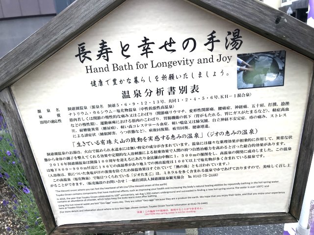有珠山の山麓「洞爺湖」は周囲43kmの大きな湖で、南岸に洞爺湖温泉街があり、湖畔には大きなホテルが立ち並ぶ。1910年四十三山の噴火で誕生した温泉。湖畔には手湯や、洞龍の湯など足湯が温泉街に点在。洞爺湖周辺には有珠山、