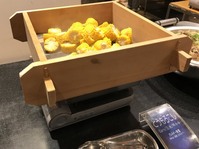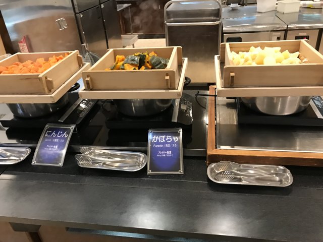 夕食;和洋中バイキング、朝食;和洋バイキング。種類が豊富で各素材が良かった。旬のじゃがいも、とうもろこし、ニンジン、かぼちゃなどは蒸しておいしい。