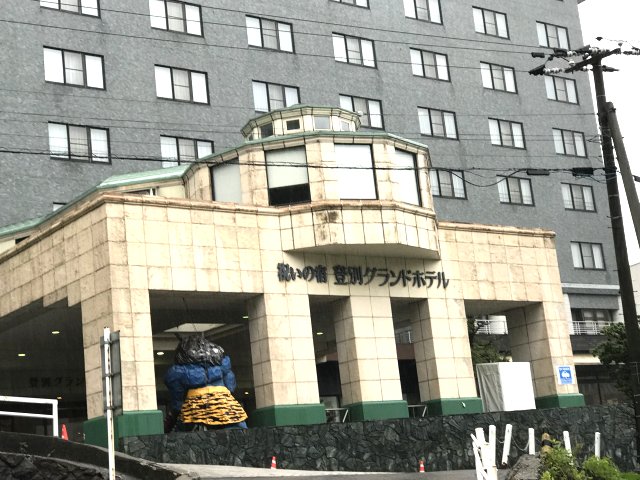 登別温泉街の入口にある老舗ホテル「登別グランドH」に宿泊。ロビーは優雅。温泉は滝見ができる露天風呂、大浴場あり。(12:30-10:00)男女入替・清掃あり。