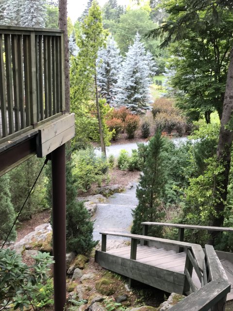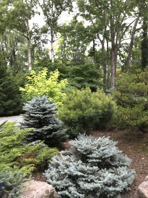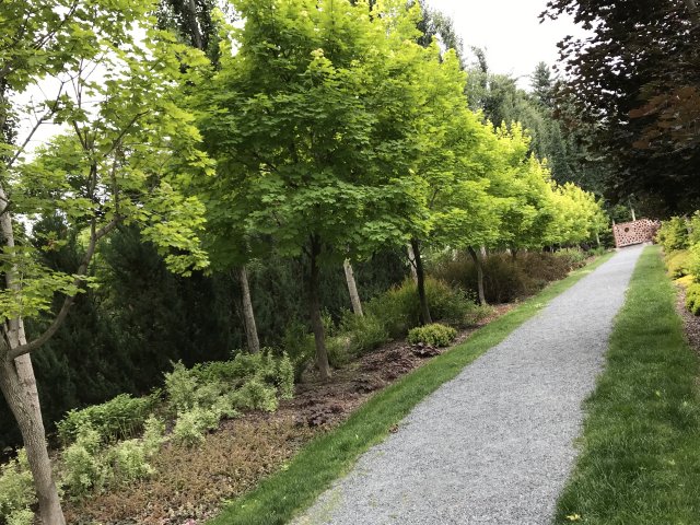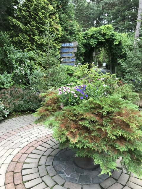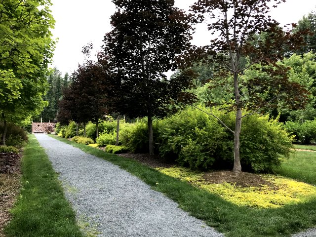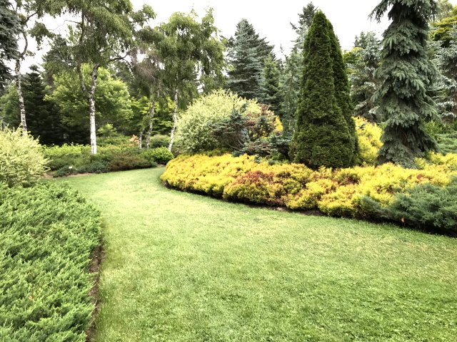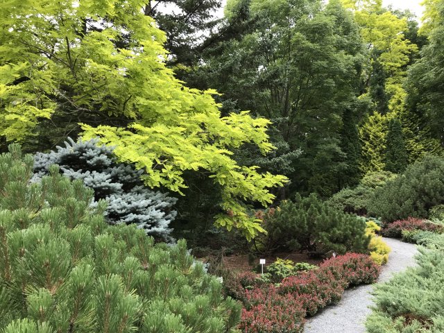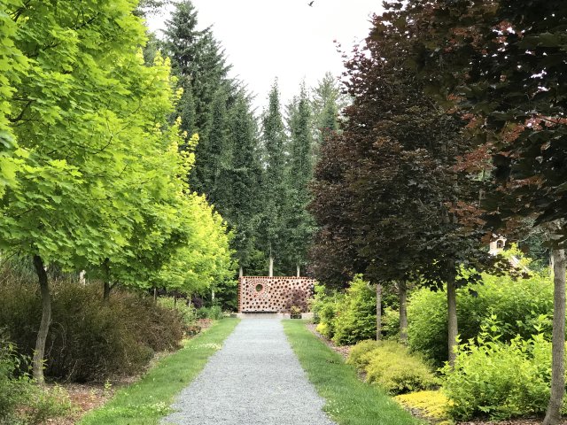 ドワーフガーデンには成長の遅い大きくならない植物が植えられ、リバースボーダーガーデンは独創的な庭園で屋外の教会のようなイメージ。50mの道沿いには楓が飢えられ、葉の色が異なり、庭園の中では最も開放的で