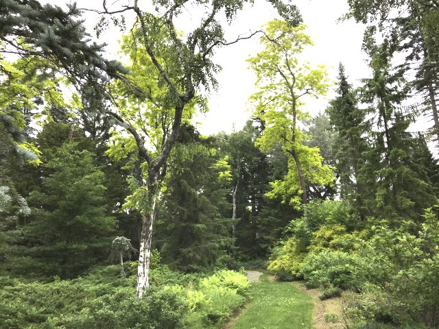 北アルプスをよく登山しているので亜高山帯に育つ針葉樹林のシラビソやオオシラビソ、トウヒ、コメツガ、カラマツ、ハイマツなど御馴染みの木もあるが、西洋の木は見たことないものが多かった。