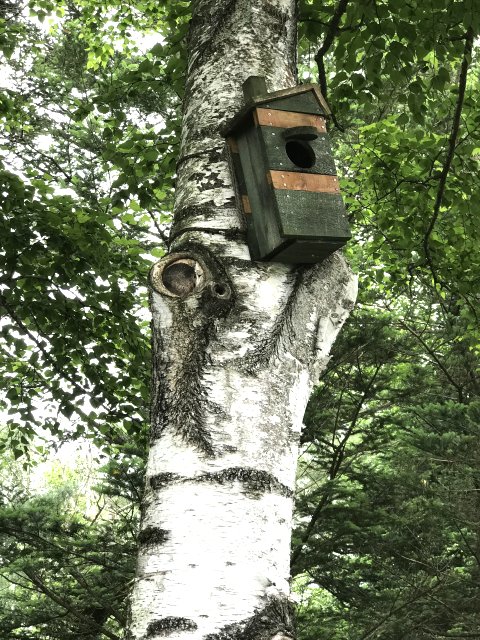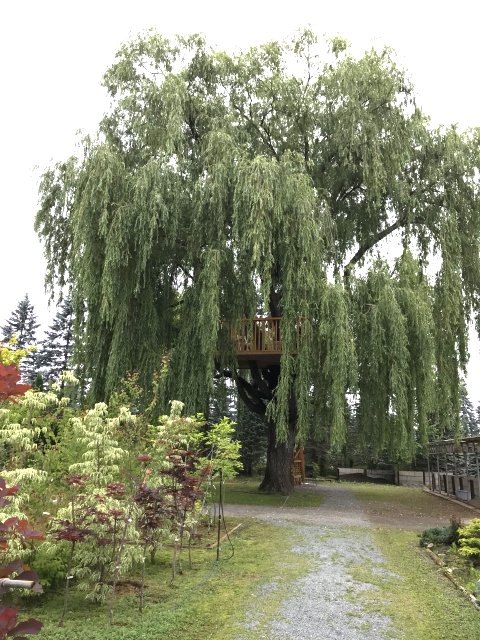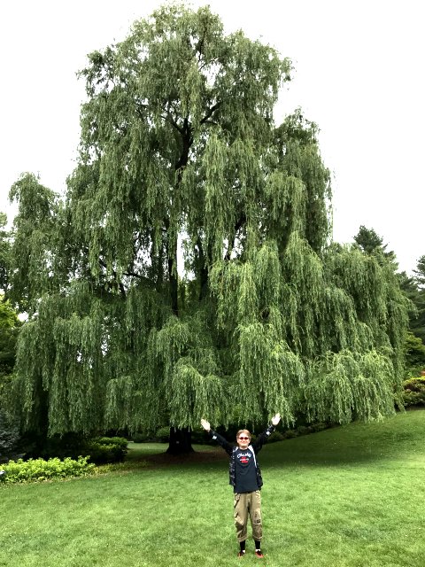 芝生の広場にある高さ20mの西洋シロヤナギトリスティスの大木、ここから先は「エゾリス」(800m,30分ショートコース),「キタキツネ」(1200m,45分コース),「ノウサギ」(1500m,60分コース)に分かれ、今回は60分コースを歩く。