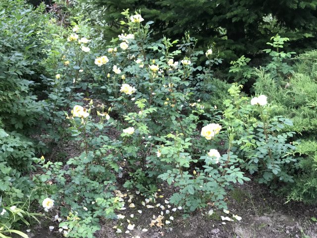 落葉樹が植えられています。もみの木、トウヒ、コメツガ、ミズナラ、ナラ、カシワ、アカマツ、ヒバ、マツ、イチイ、カエデ、モミジ、シラカバ、サクラ、ニセアカシア、ユキヤナギ、シャクナゲ、ナナカマド、つつじ、ハマナス、バラ、