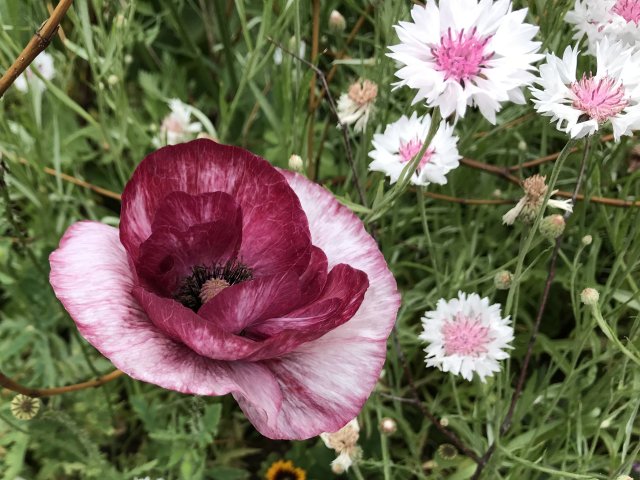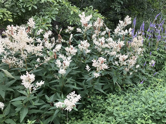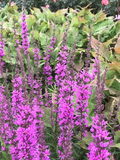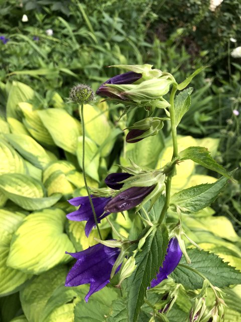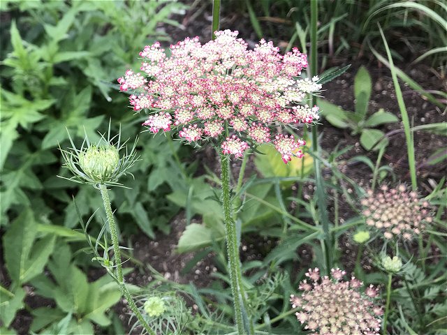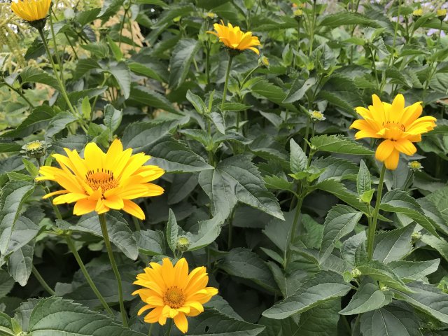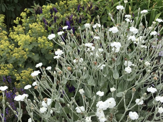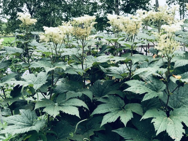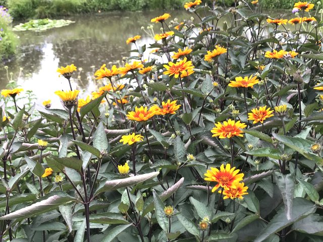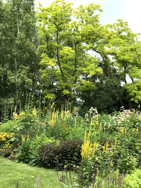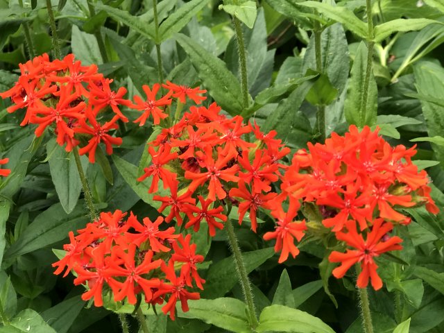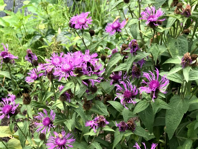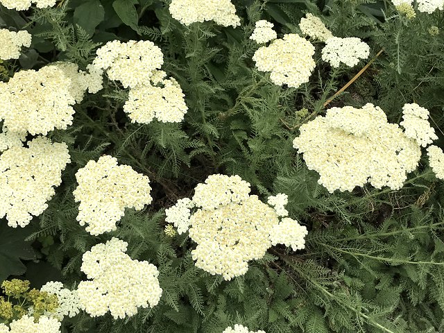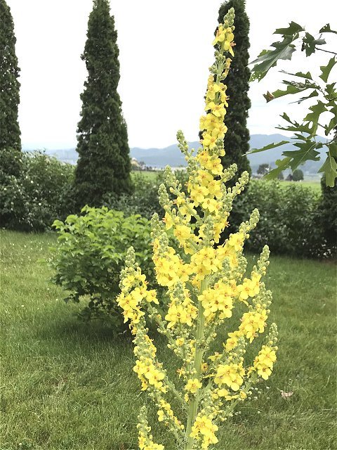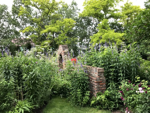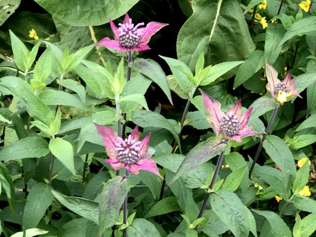 ユリ、バーバスカム、カンパニュラ、フロックス、ホリホック、ヘリオプシス、アンジェリカなど色々な花が見られます。ハーブの葉はありますが、ラベンダーは殆ど見かけません。たくさんの山野草があり、初めて見る花も数多くありました。