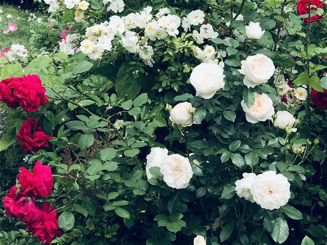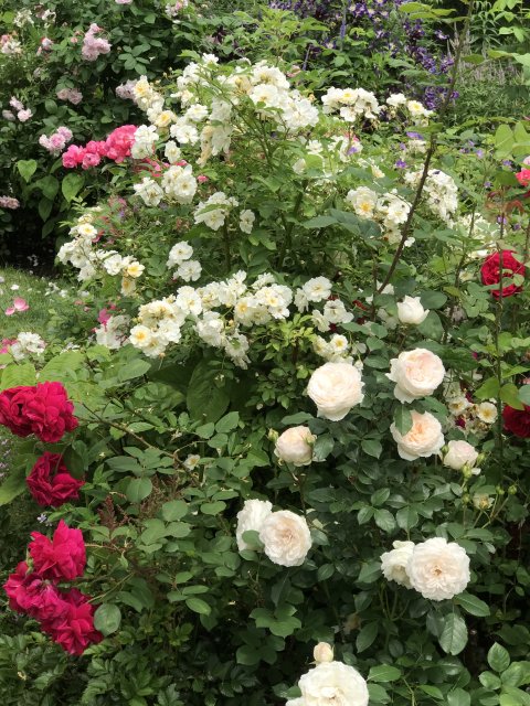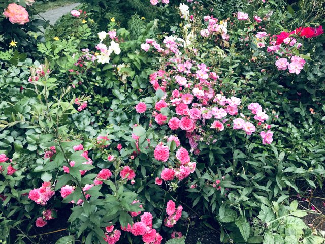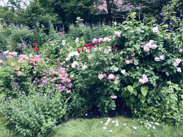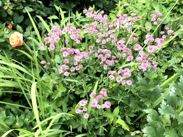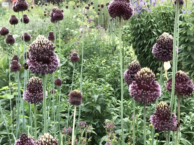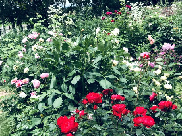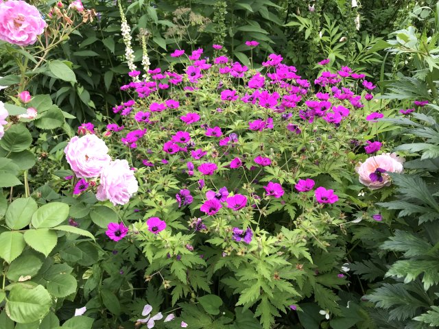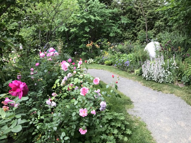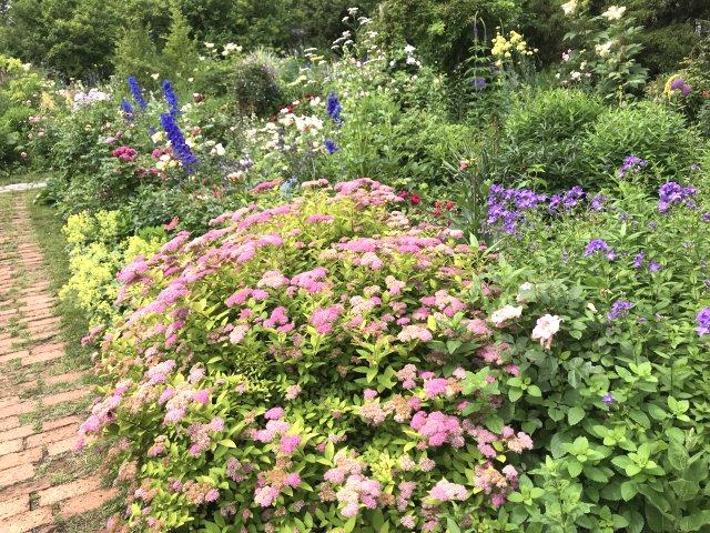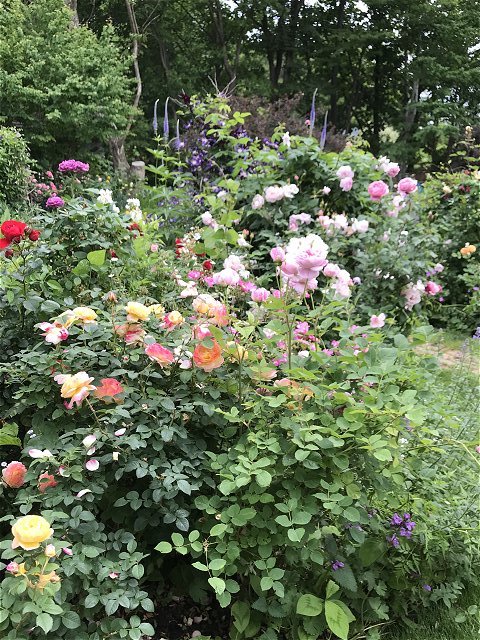 園内には初夏から夏の花が咲いていました。バラが花盛りで、アリウム、ゲラニウム、クレマチス、ルピナス、サルビア、モナルダ、エキナセア、ヘメロカリス、ジギタリス、エゾミソハギ、エゾクガイソウ、オニシモツケ、ヤナギラン、