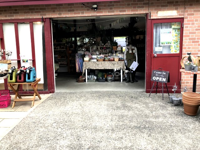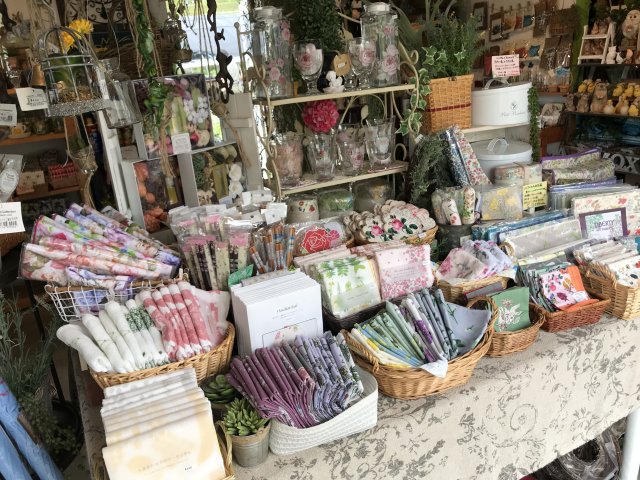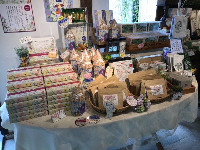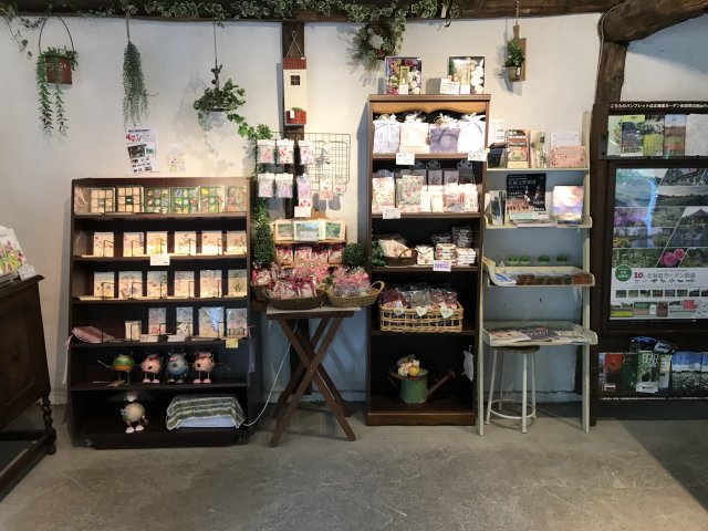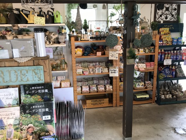 入口にはショップがあり、宿根草やハーブなどの苗を販売。ガーデングッズ、可愛らしい小物、素敵な雑貨なども販売。オリジナルグッズあり。