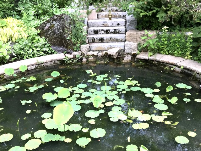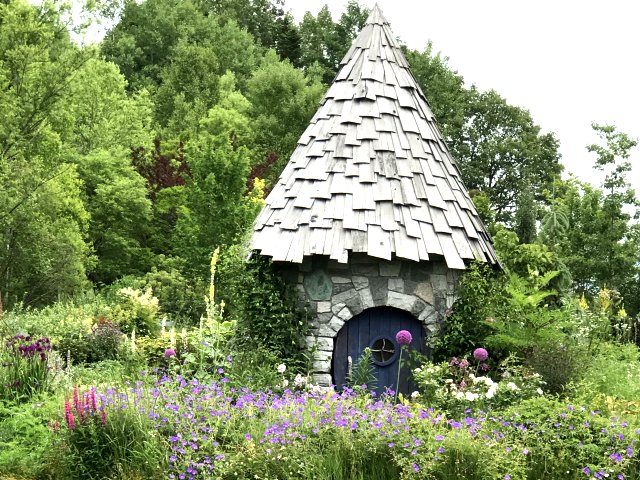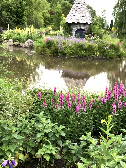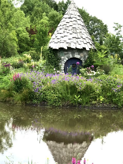 1)ノームの庭(The Gnome's Garden);色とりどりの華やかな花が咲く自然風の庭園です。まさにおとぎの国のような庭園でメイン。水辺の小島にとんがり帽子の家が愛らしい。