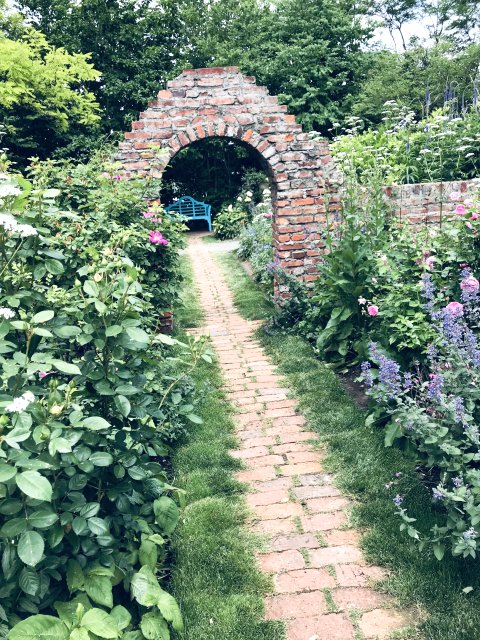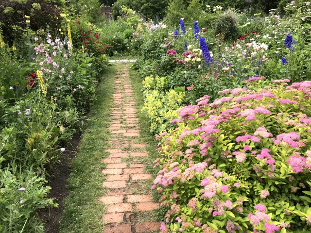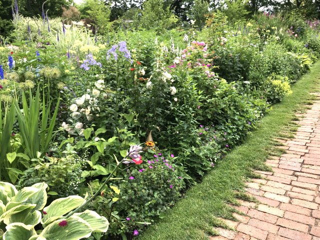 5)ロングボーダー(Long Border);曲線の道に合わせた庭園。ダリアなどポイントになる花。
