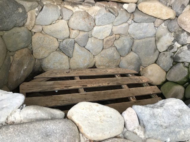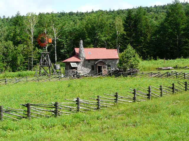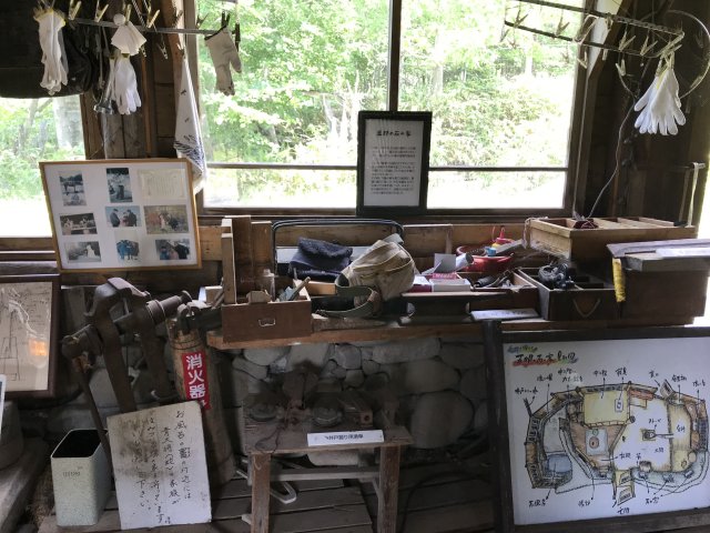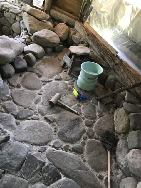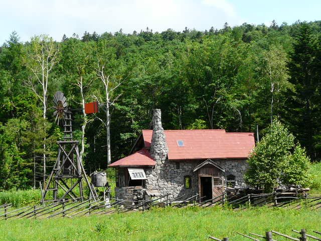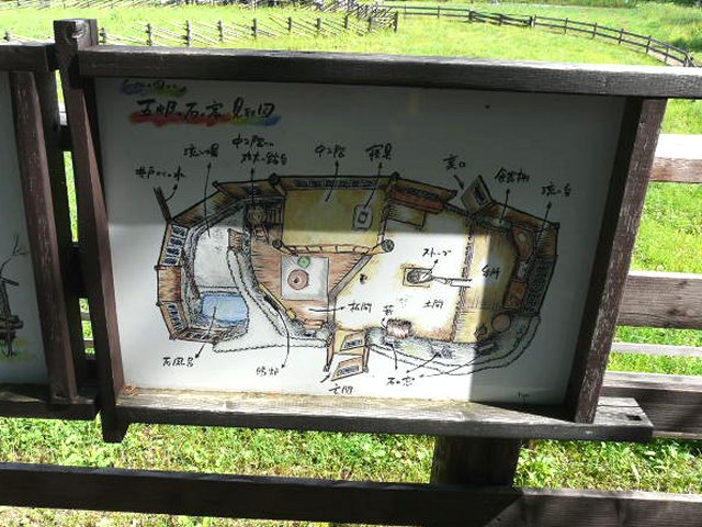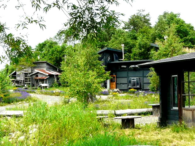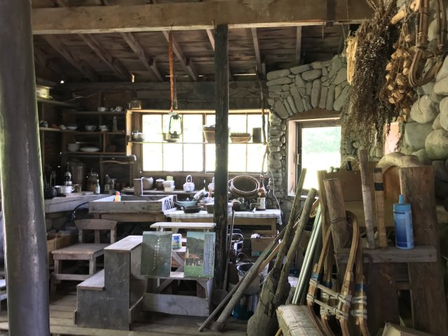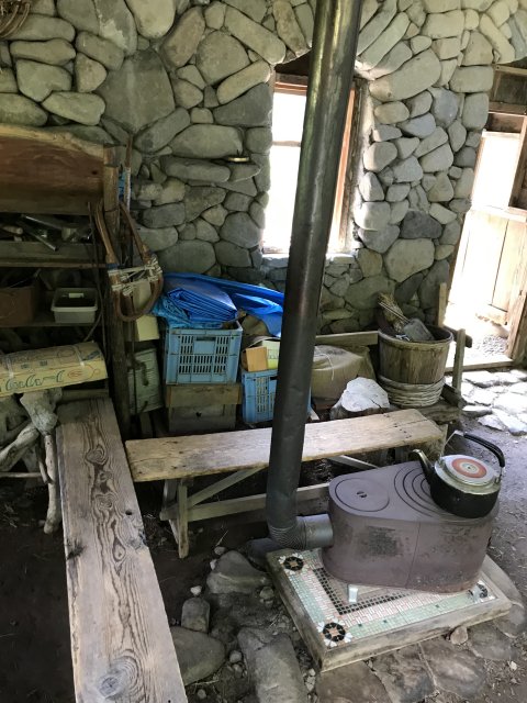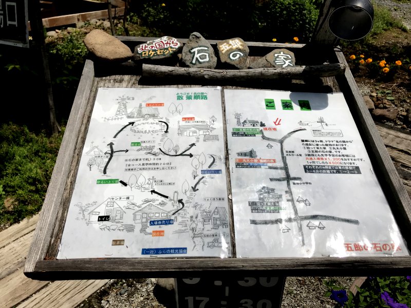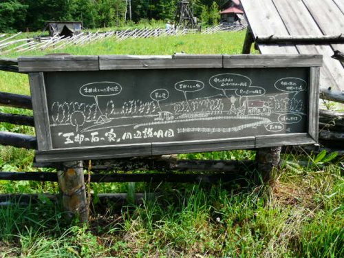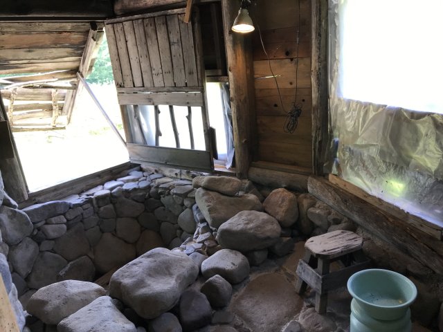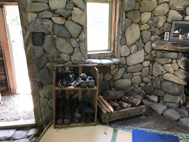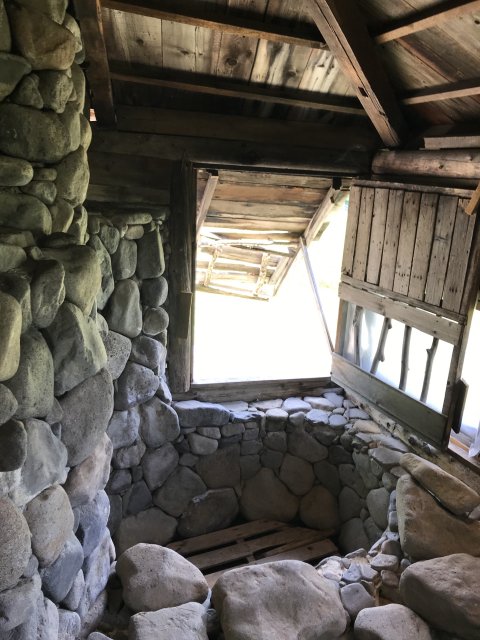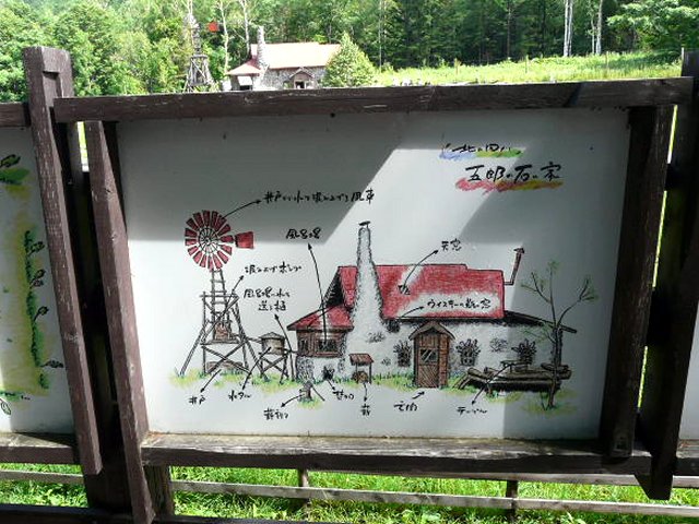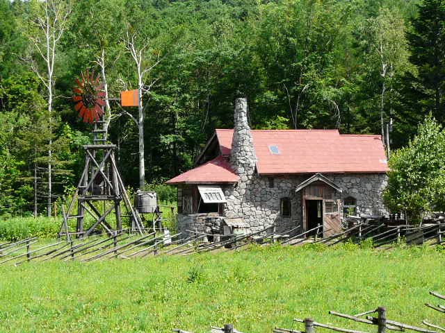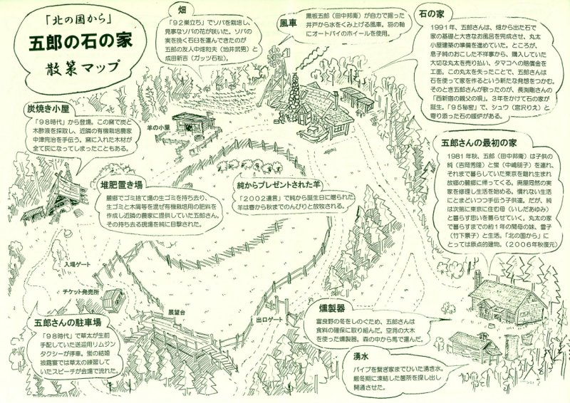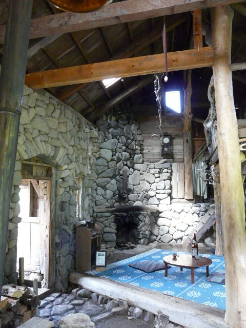 1)「石の家」;黒板五郎が建てた石の家。畑から大量に出る石を使った石の家で、石のお風呂もある。炭焼き小屋。