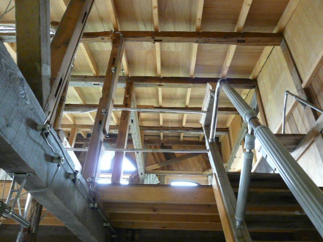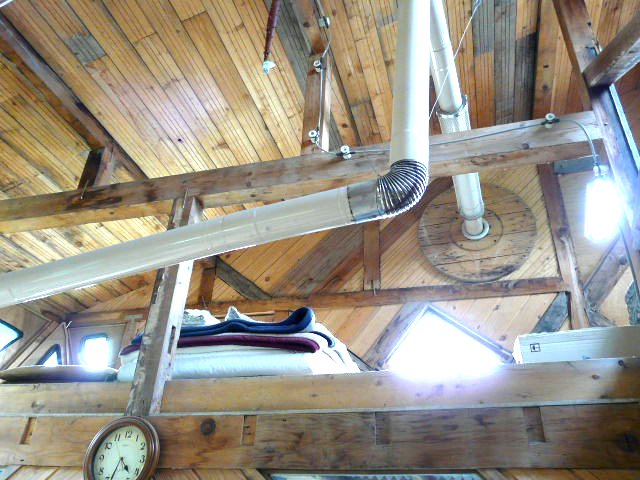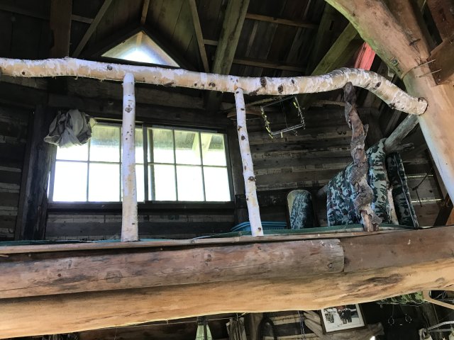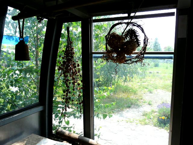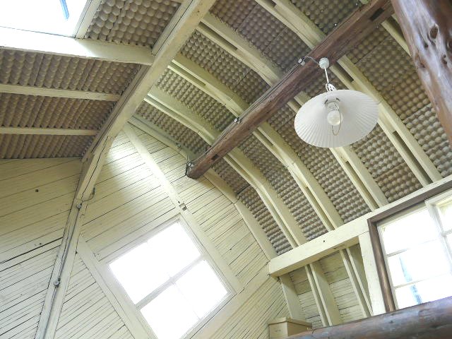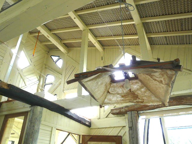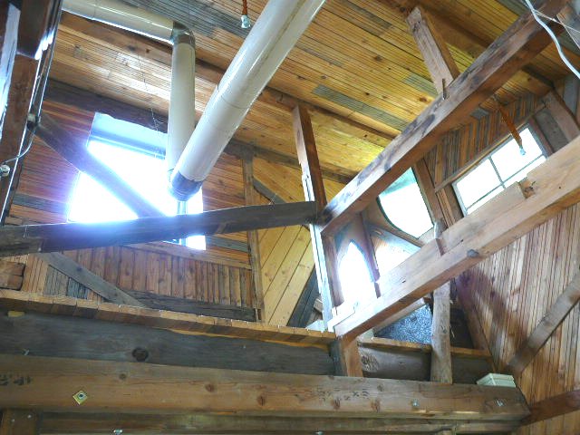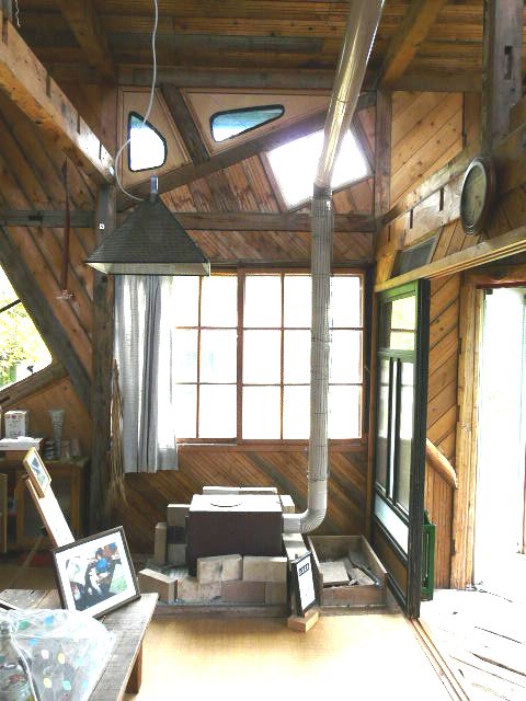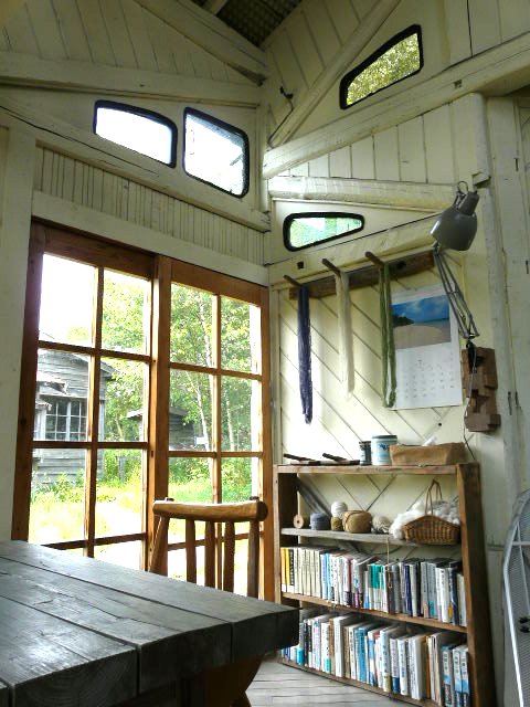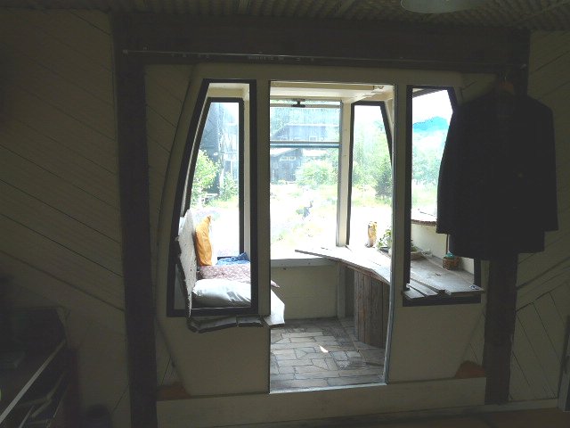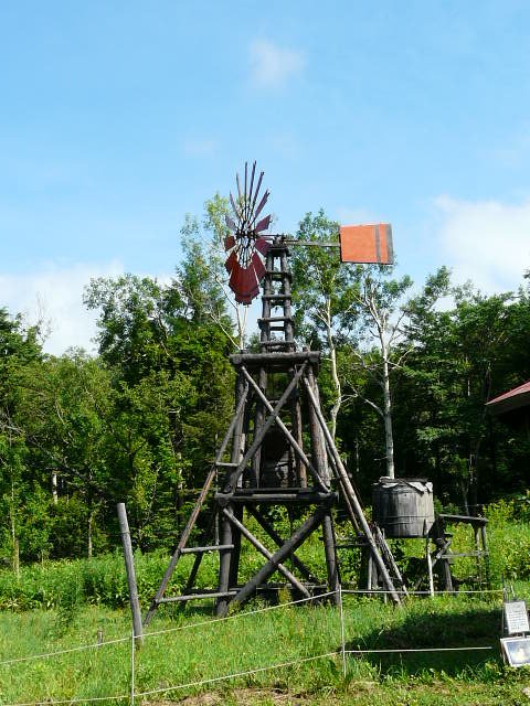 4)「3番目の家」(麓郷の森);丸太小屋が燃えた後に住んだ3番目の家。屋根に風力発電が見える。3番目の家は老朽化が激しく立入禁止。
