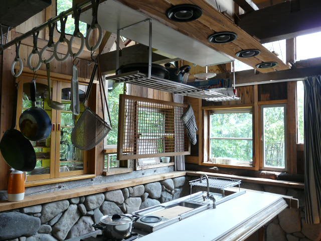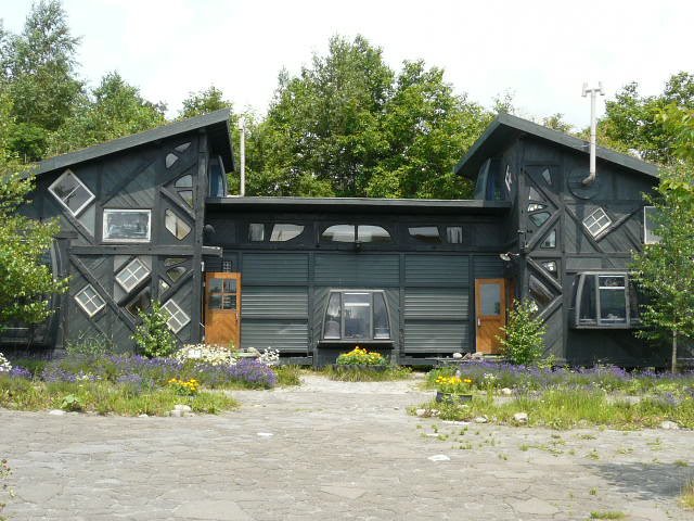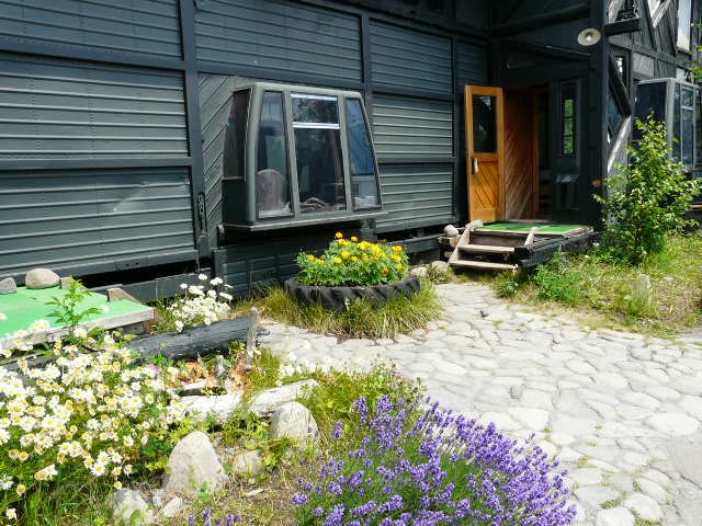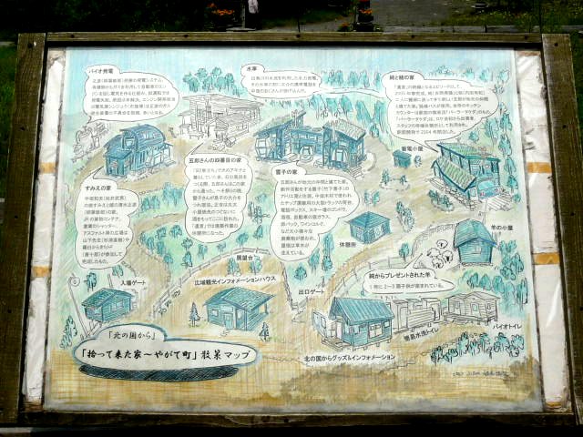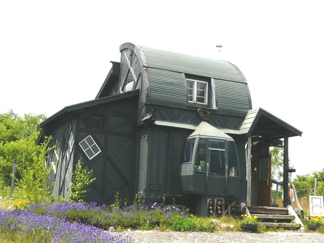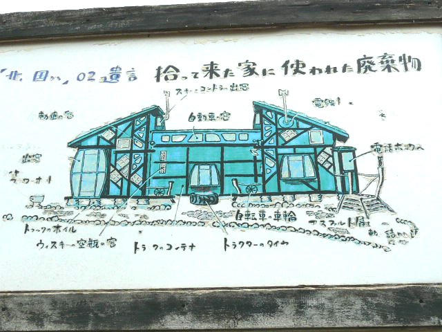 6)「すみえの家」;中畑木材の娘にプレゼントされる家。貨物コンテナ、スキーゴンドラなどの廃材を集めて作った家。バイオ発電機あり。