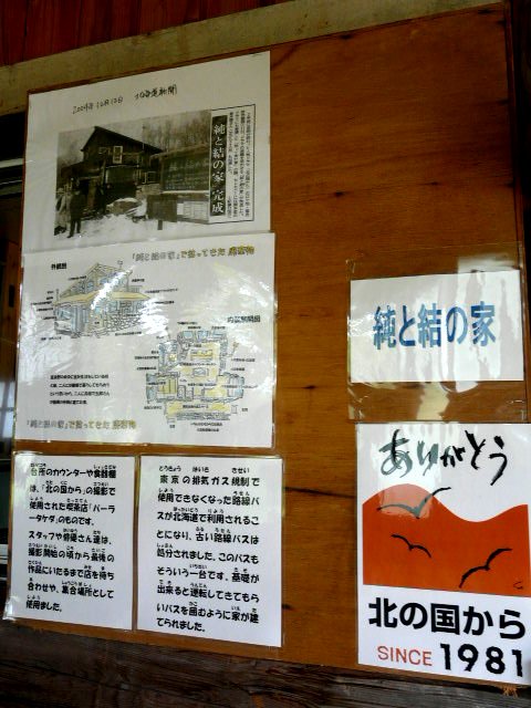 「燃えた丸太小屋」、そして「五郎の石の家」などロケのセットがそのまま保存されています。のどかなところで、至るところにロケの写真などが展示されています。北の国から第1話の放送日から40年以上が経過し、建物は老朽化、写真も古ぼけてきました。