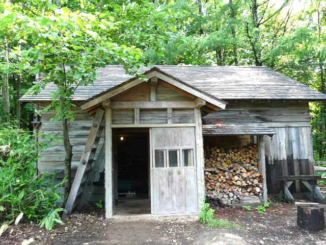 3)「丸太小屋」(麓郷の森);丸太小屋(2番目の家)の家は火の不始末で燃えてしまった家。