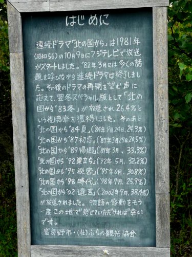 北海道・富良野にある「麓郷」は「北の国から」のロケ地。富良野の町から車で30分。山奥にはあるが、意外にTVドラマのイメージとは異なり開けた一帯。「拾ってきた家」や「麓郷の森」の「五郎3番目の家」、