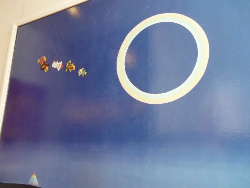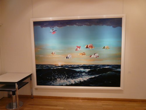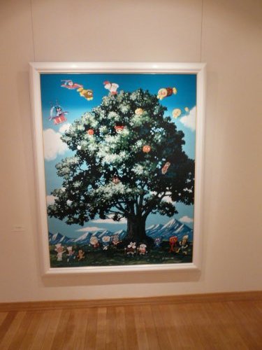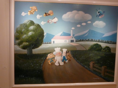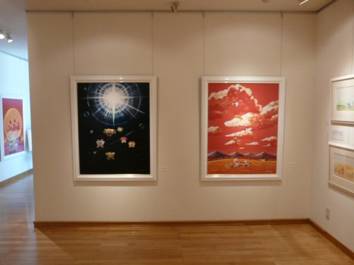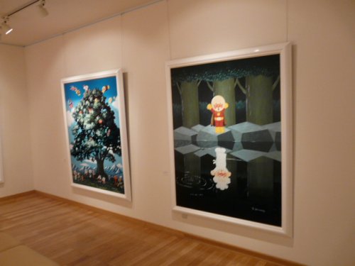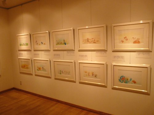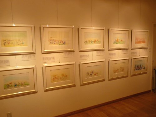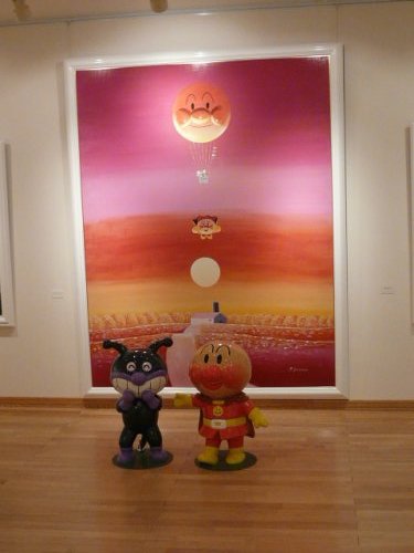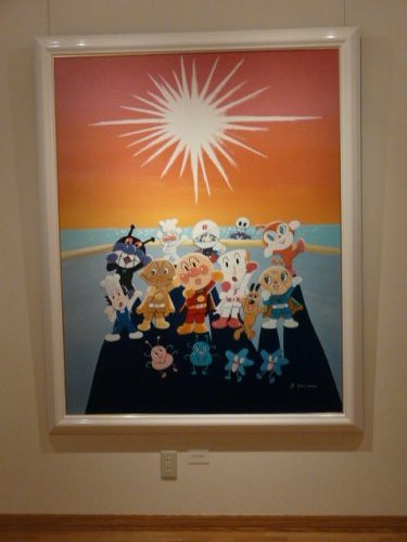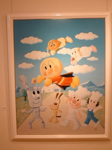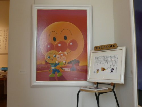 店内はアンパンマン一色です。アンパンマンのおもちゃや文具、食器等いろいろ。店内は1Fがショップとアンパンマンのおもちゃがたくさん置いてあるプレイルーム。2Fは作者の原画の展示スペースで111点の作品が展示。イラストなど多数。