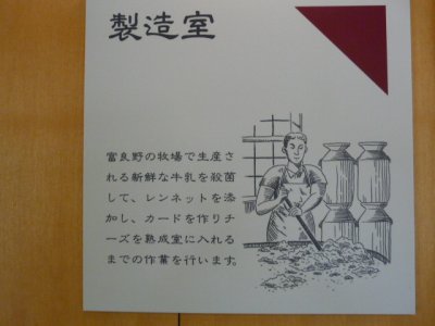 「富良野チーズ工房」は富良野北の峰にあり、富良野の恵まれた自然環境と自然の大地に育まれた素材を用いてチーズやバター等の乳製品を製造しています。チーズ公園の中に建っています。1Fには併設の工房で製造室と熟成庫とチーズの