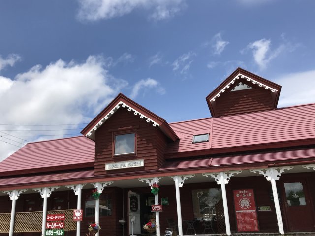 6-1)「カフェest」;木のぬくもりが広がる店内でミルク工房のお菓子とカフェ。ロールケーキ・バームクーヘンなど。