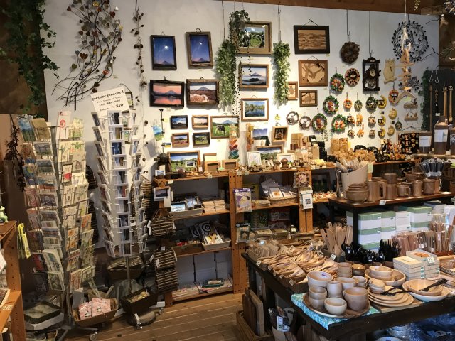情報プラザではスイーツ、ドリンク、特産物などニセコの特産物、地元作家の工芸品などを販売。フリースペースは地元の農産物・花などを販売。