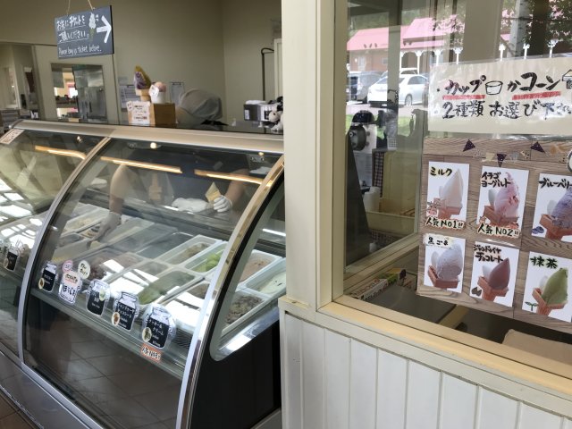 牛から絞った新鮮なミルクを使用したソフトクリームの「ミルク工房」の他、レストランやカフェ、雑貨などあり。