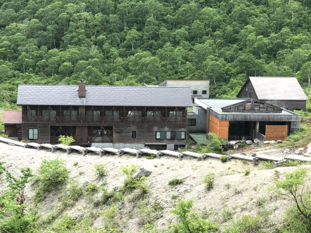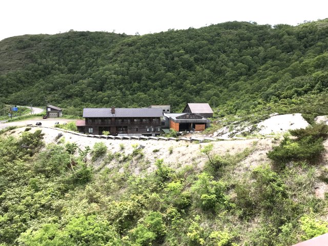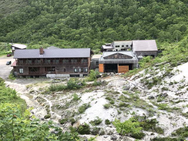 ■道道66(ニセコパノラマライン)を走り、蛇行しながら徐々に標高を上げていくと、眼下にはニセコの町が望めます。ニセコアンヌプリの登山口に山小屋風の温泉旅館「ニセコ五色温泉旅館」あり。