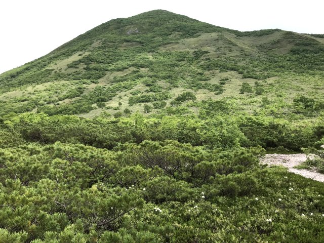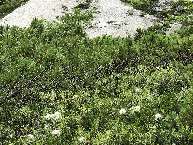 白い花のイソツツジが群生し、ハイマツの下にはアカモノがたくさん咲いていました。標高が800m前後でこれだけの高山植物が自生するとはさすがに北海道。