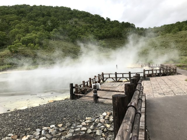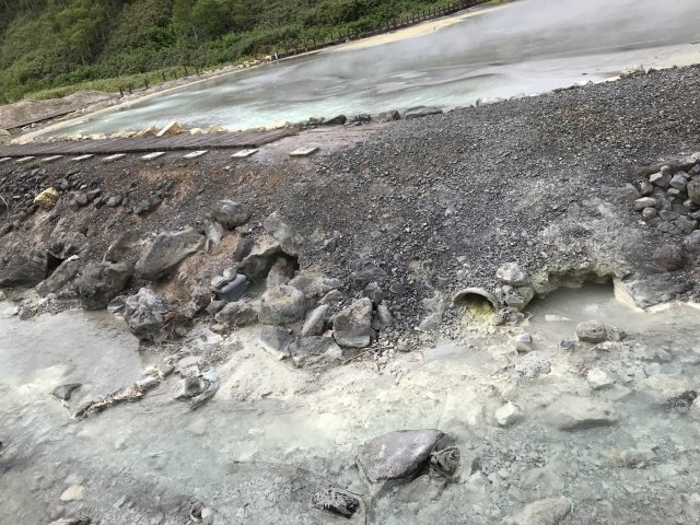 登別温泉の大湯沼と比べると沼の広さは小さいが、湯気と硫黄の匂いはかなり多めと感じました。