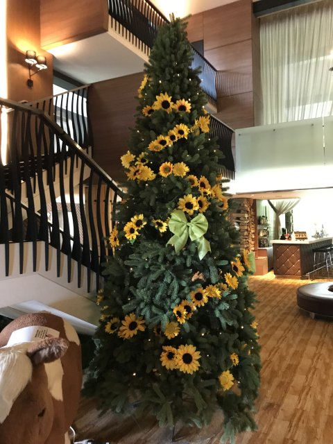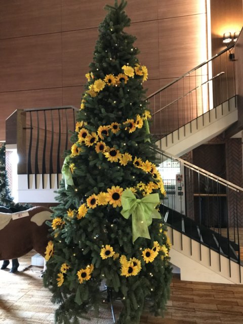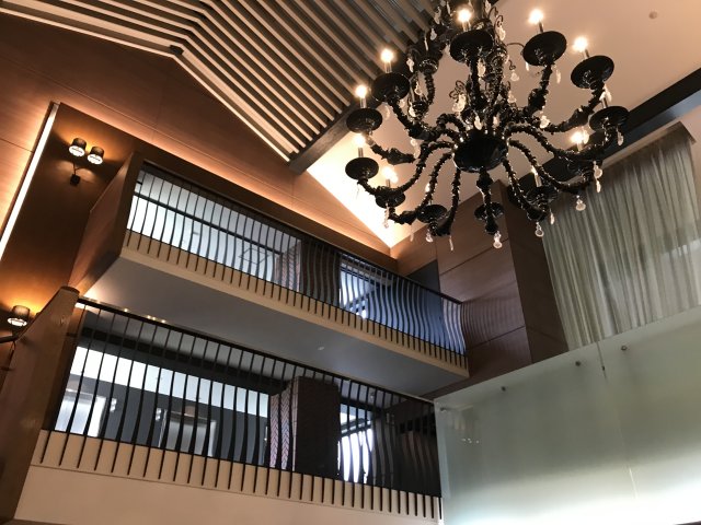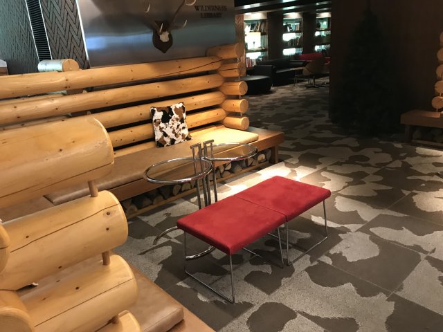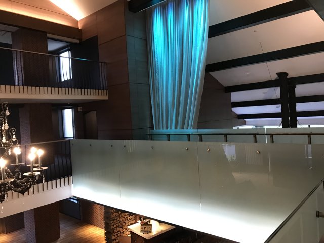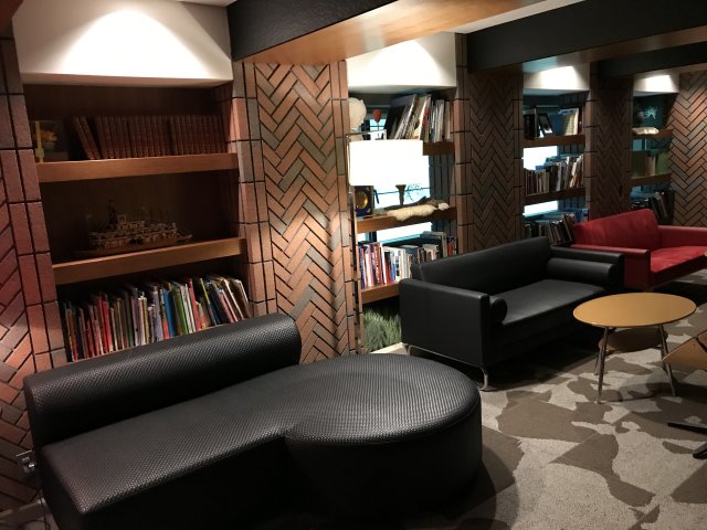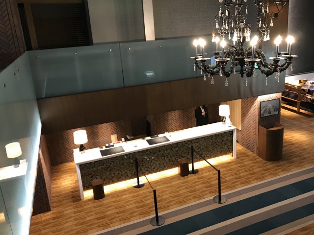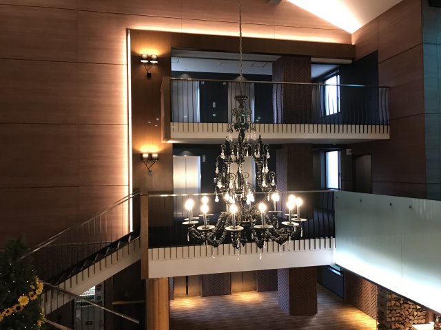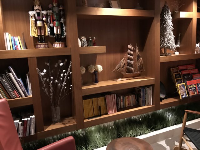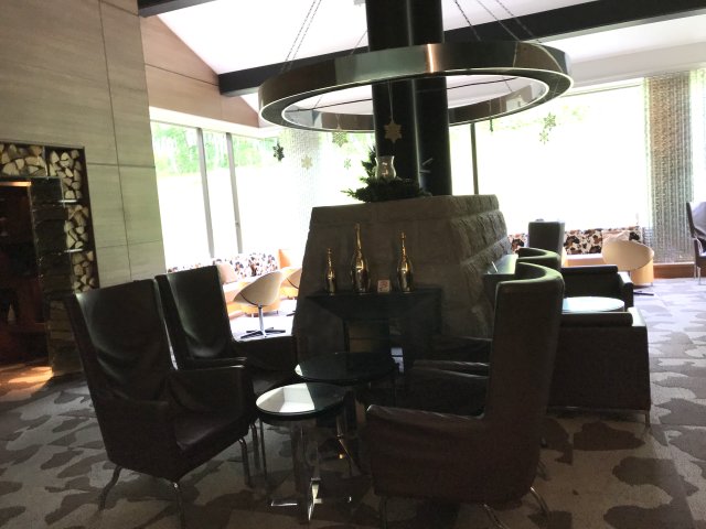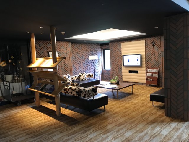 4-1)ロビー・ラウンジ;北欧風の内装でインテリアはお洒落。大きな木が置いてあり、1F・2Fが吹き抜けで開放的。ロビー、ライブラリーも落ち着いた雰囲気があります。