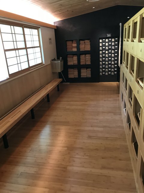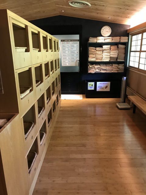 泉質はナトリウム塩化物泉でお肌はツルツルに。湯は淡黄色。無臭。脱衣所は木のぬくもりを感じて明るい。