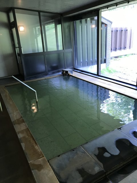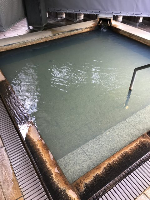 泉質はナトリウム・炭酸水素塩・硫黄塩・塩化物泉、温度は57.6℃、湯出量は104l/m。湯温は38-40℃と少しぬるめでちょうど良かった。