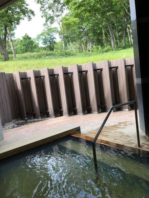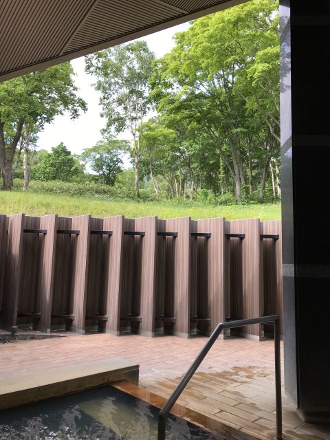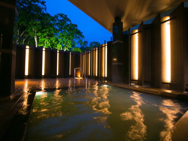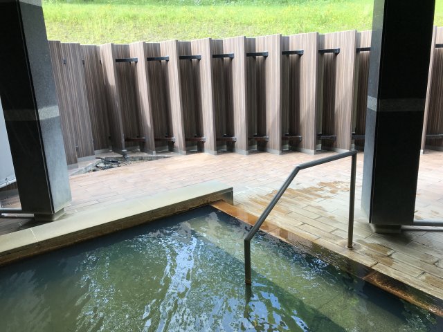 露天風呂は小さめ(4-5人)で眺望はありません。高原を見下ろす側に大きな露天風呂があれば最高なのですが・・・。夜になるとライトアップされて幻想的な雰囲気となります。