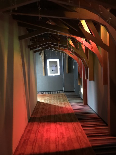 4-3)レストラン;煙をモチーフとしたモニュメントが印象的な「エクラ」で、大きな窓からは180度の景色を堪能できます。