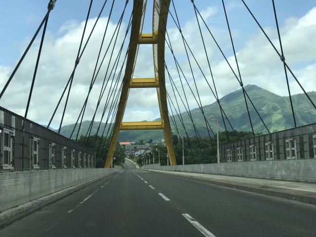 道道66号の「ニセコ大橋」は1994年に完成した全長360mのニールセン・ローゼ桁橋で鮮やかな黄色をしている。羊蹄山やニセコアンヌプリを望みながら函館本線と尻別川を跨ぐ。