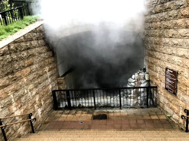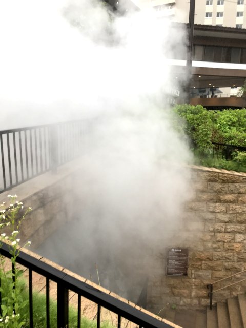 登別温泉街の中心にある間欠泉で、3時間ごとに音とともに勢いよくが湯が噴き出す。