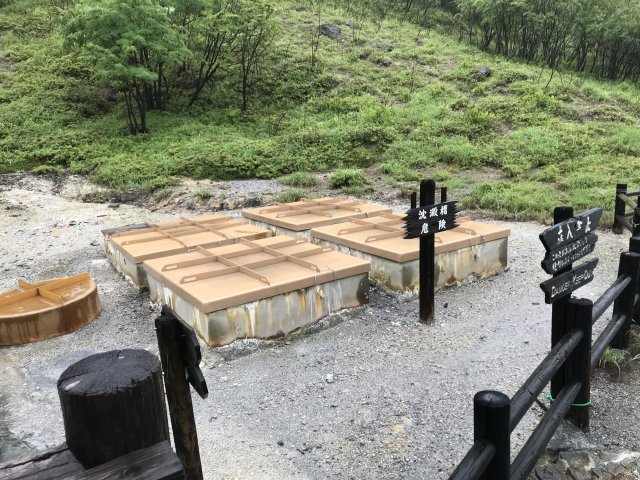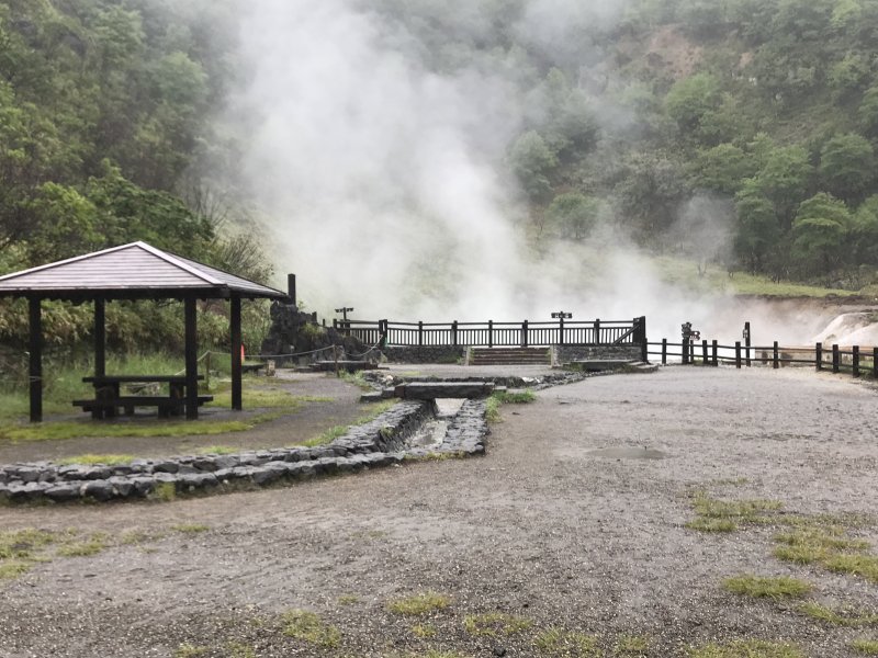 約8000年前に活火山「日和山」噴火によって誕生した直径450m、面積約11haの火口群。噴気の吹き出し口が多く「地獄谷」と呼ばれる。「鉄泉池」と呼ばれる間欠泉では硫黄の香り漂う蒸気が立ち昇る高温の湯が見られます。