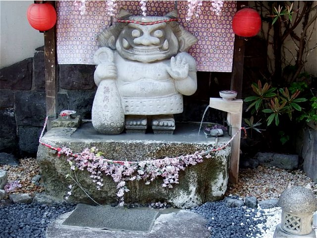 登別温泉では地獄谷のイメージキャラとして鬼の像を設置しています。登別温泉に近づくと硫黄のにおいが立ち込めてきます。温泉街の「極楽通り商店街」などにも鬼像があり、鬼は登別温泉の湯の守り神「湯鬼人」。