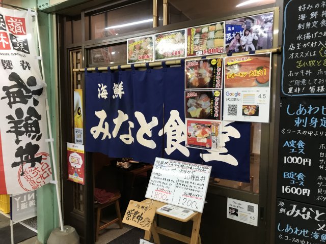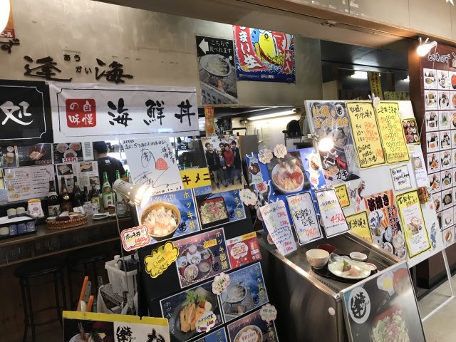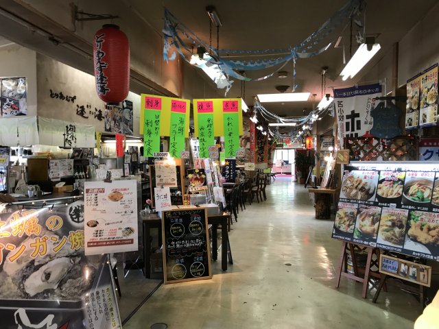 施設内には鮮魚や水産加工品、野菜、惣菜などのお店があり、海鮮丼やホッキカレーなどご当地グルメが味わえる飲食店が20店舗が並んでいます。昼飯時間帯はお店は混んでいます。新鮮で具だくさんの海鮮丼で美味しかった。
